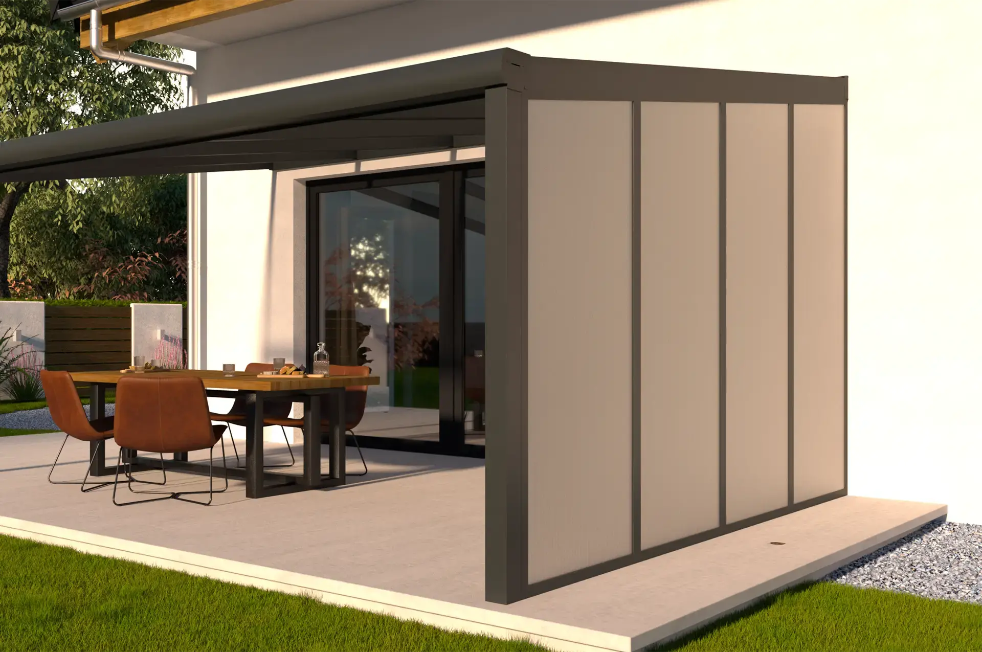 De FW100 is beschikbaar in drie verschillende polycarbonaat keuzes. Zo stem je de lichtinval en sfeer onder je overkapping volledig af op jouw wensen, van extra helder licht tot meer comfort en zachtheid.