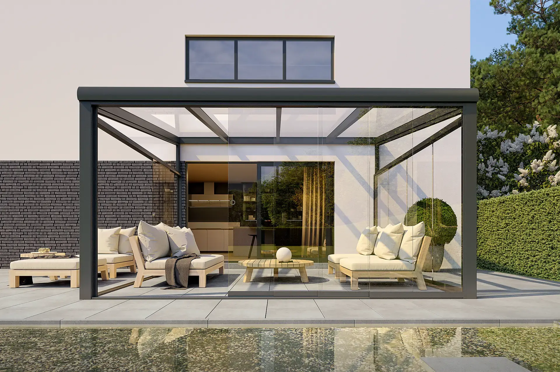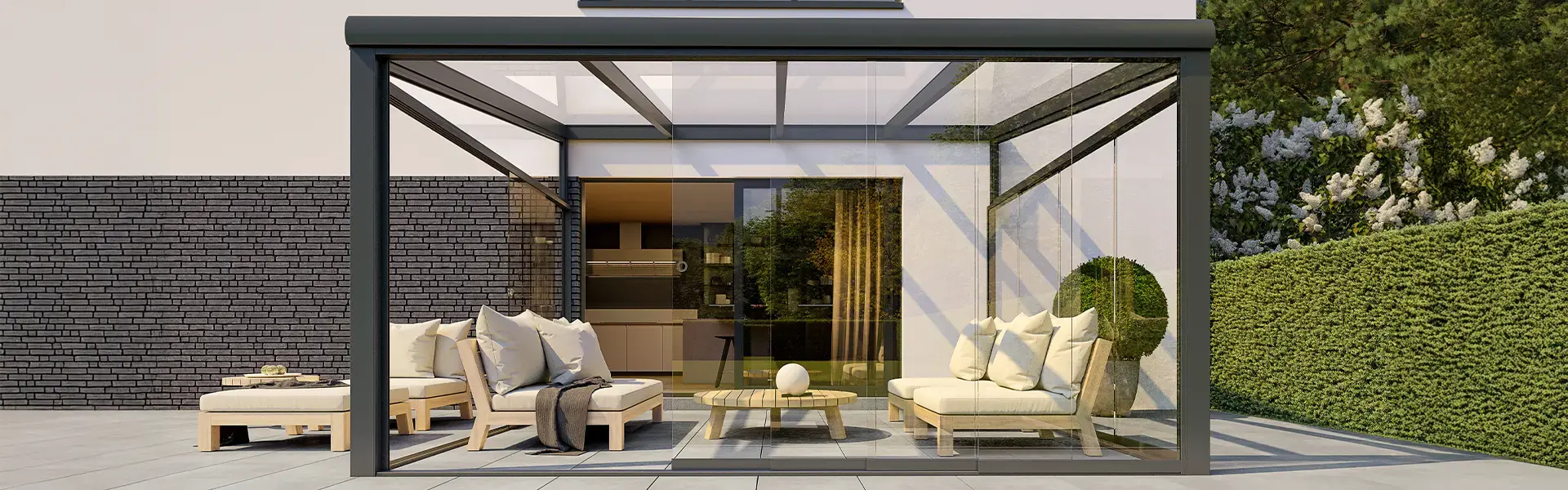 De SW450 is een frameloze glazen schuifwand die zorgt voor een open, helder uitzicht en een elegante uitstraling. Dankzij het minimalistische profiel behoud je een open uitzicht, terwijl wind en regen netjes buiten blijven.