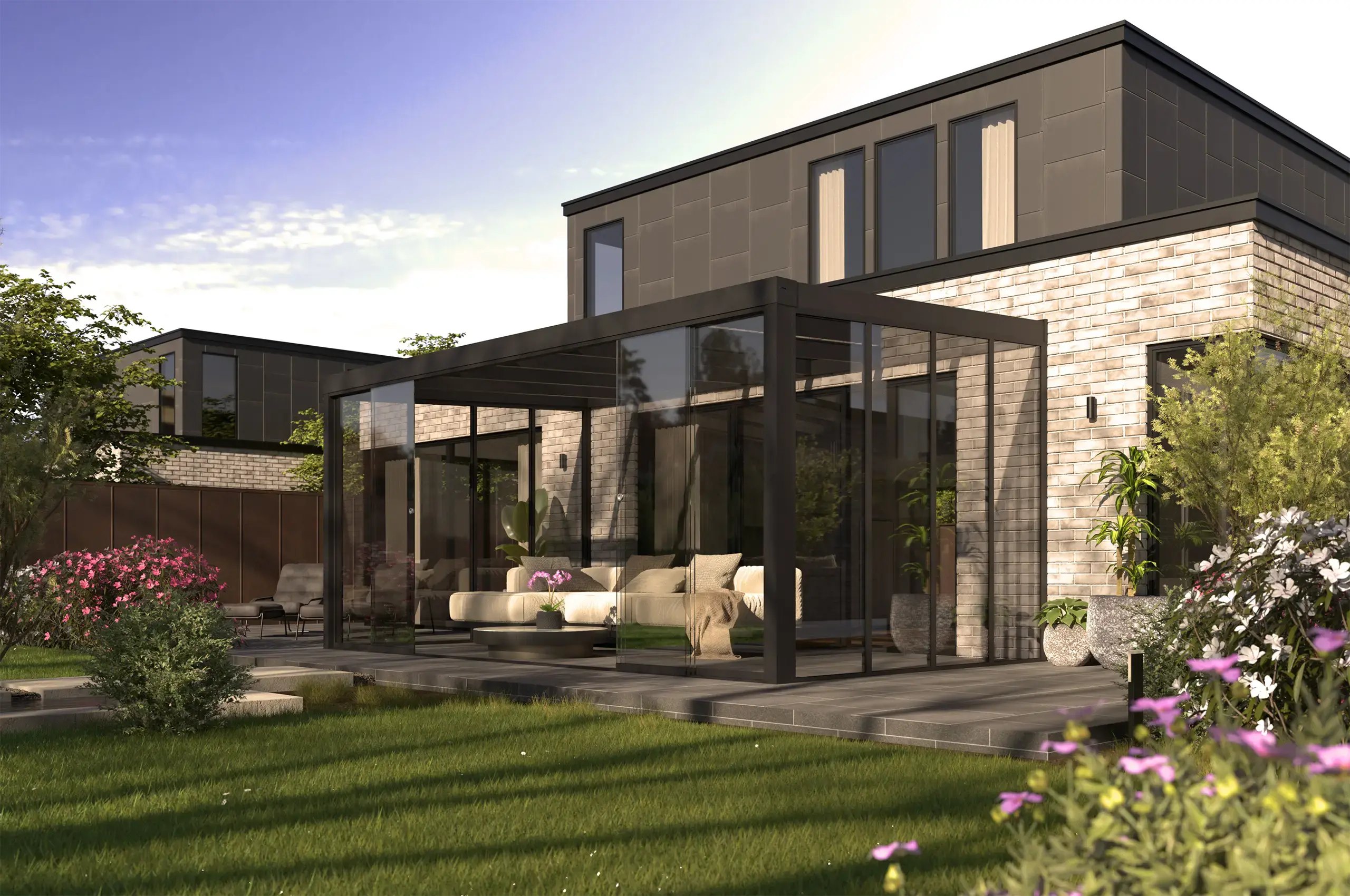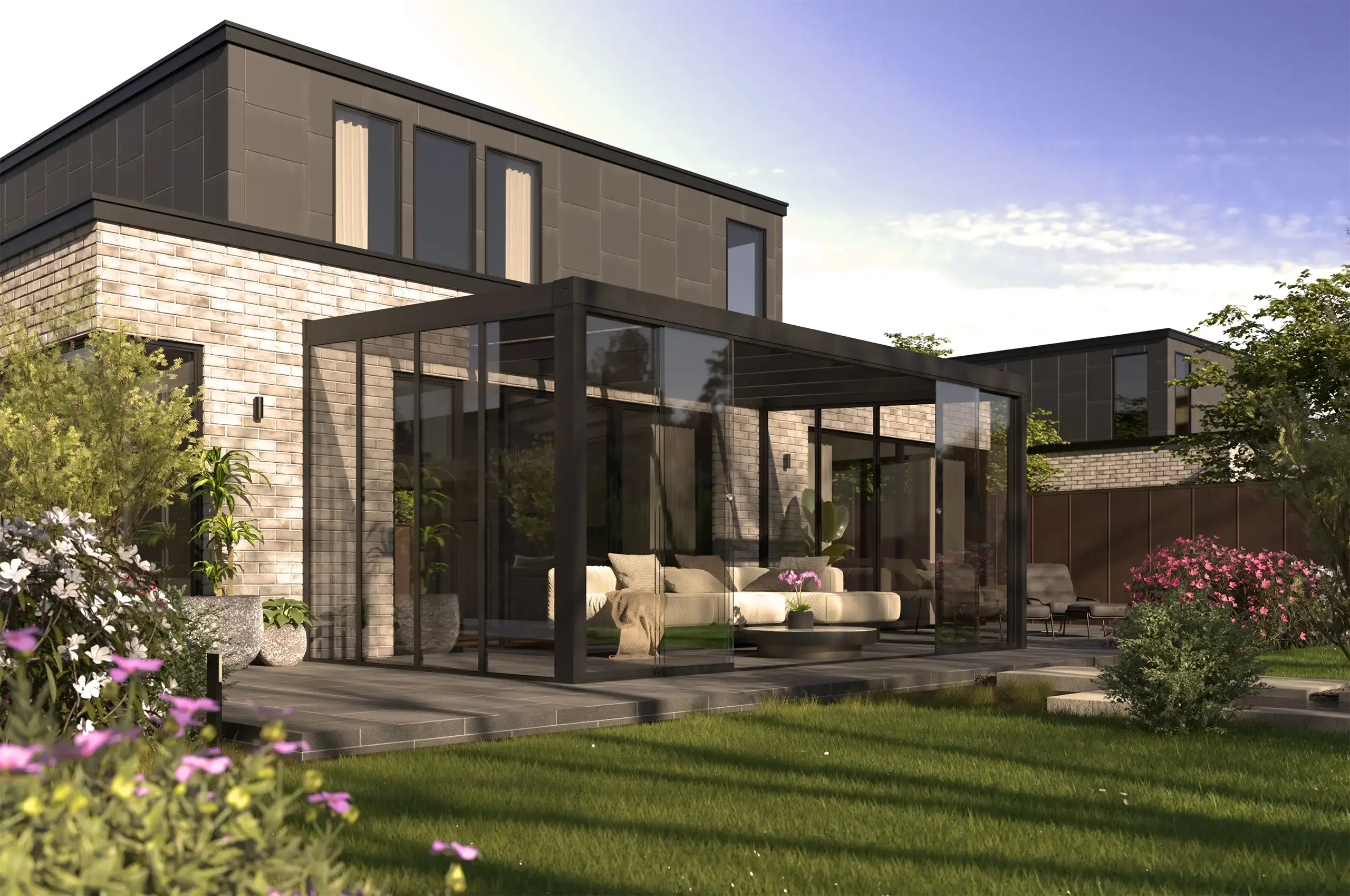 “Geproduceerd met slanke, hoogwaardige profielen die naadloos aansluiten op het ontwerp van de overkapping. De glazen panelen sluiten strak en lopen soepel. Met opties zoals een meeneemsysteem en tochtprofielen voeg je extra comfort toe aan het geheel."
